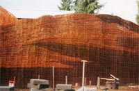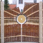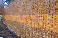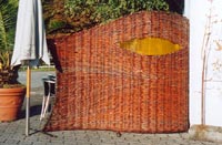 Sonne Aus mehrfarbigen Flechtweiden gestaltete Sichtschutzwand (9,80 m).