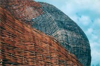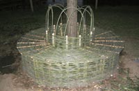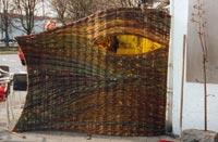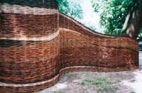 Baumbank Um den Stamm einer Linde gebaute Sitzbank mit Lehne. Aus frischen grünen Weiden (Ø 1,0 - 3,5 cm) geflochten. In Zusammenarbeit mit Susanne Thiemann, Korbflechtermeisterin aus München. [www.susanne-thiemann.de] |
