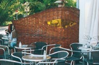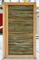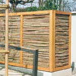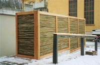 Sichtschutz Weidenstöcke 4-5 cm in Lärchenholzrahmen eingelassen - Muffathalle Muenchen |