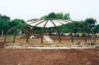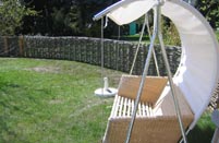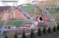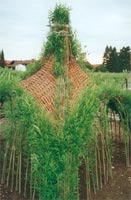 Grünes Weidenhaus Das Dach aus getrockneten Flechtruten. Eingerahmt von einem Weiden-Krabbeltunnel. |