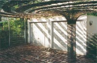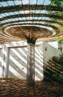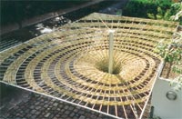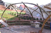 Carport Dachkonstruktion aus Rundeisen mit Flechtruten (Ø 1 - 1,5 cm) ausgeflochten. |