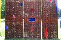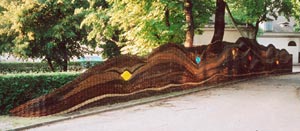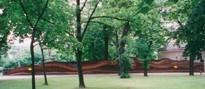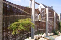 Flechtwand mit Augen Schule der französischen Botschaft Wien. 49m lang mit buntem Plexiglas. |